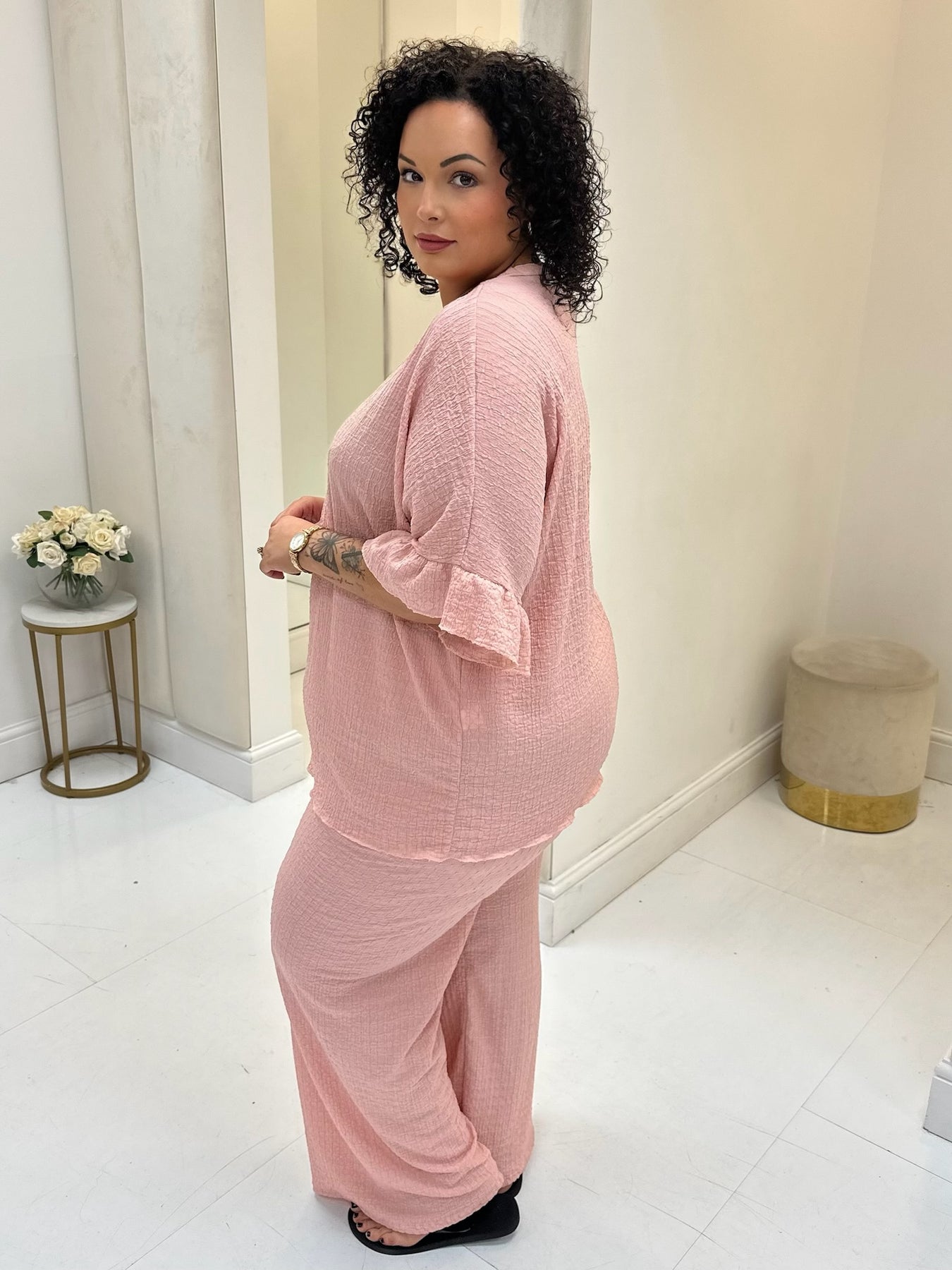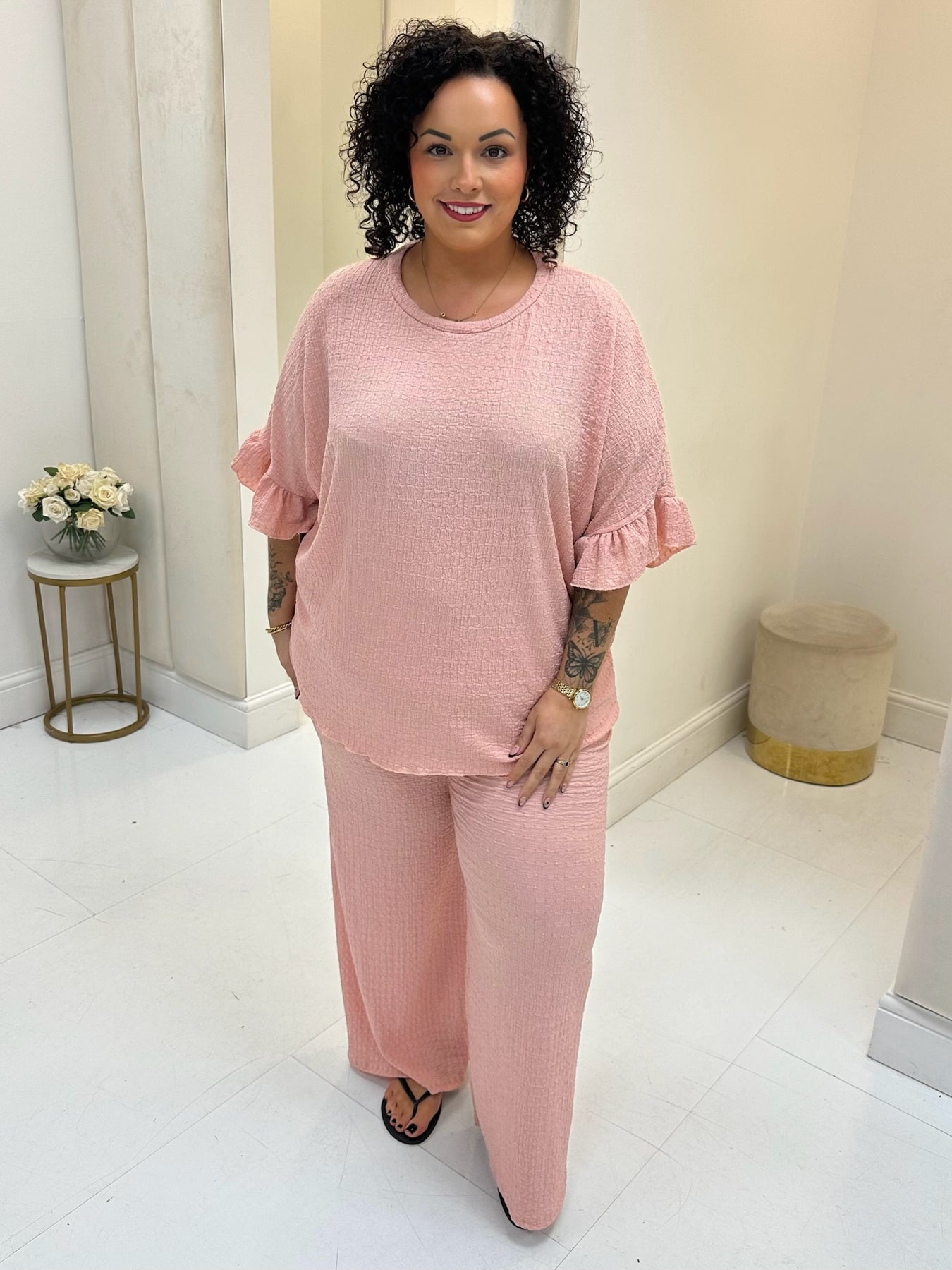Kimberly Dusky Pink Waffle Frill Two Piece Set