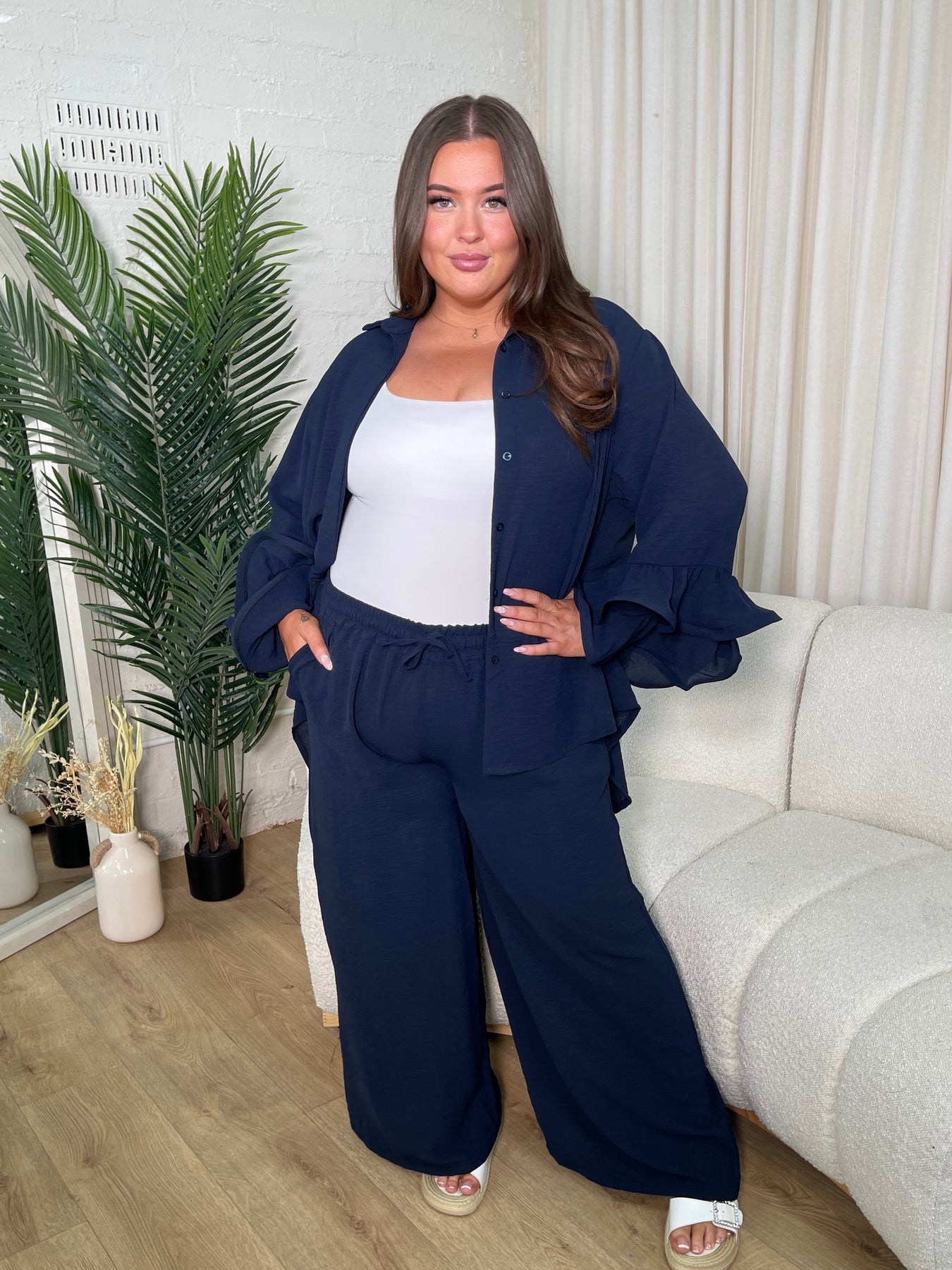 Tori Navy Frill Sleeve Two Piece Co-Ord