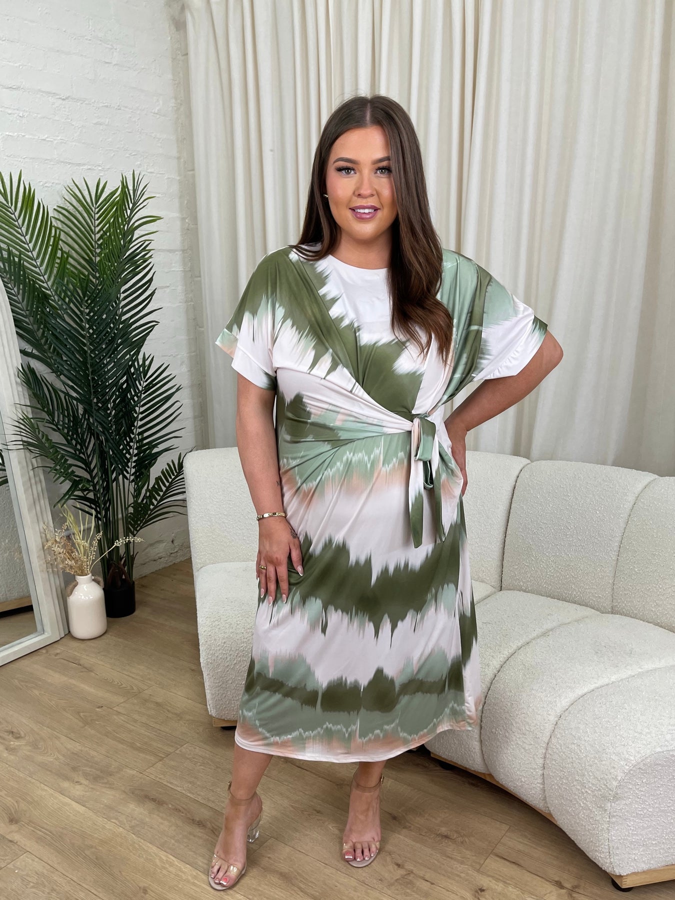 Raven Khaki/Peach Tie Dye Print Slinky Midi Dress