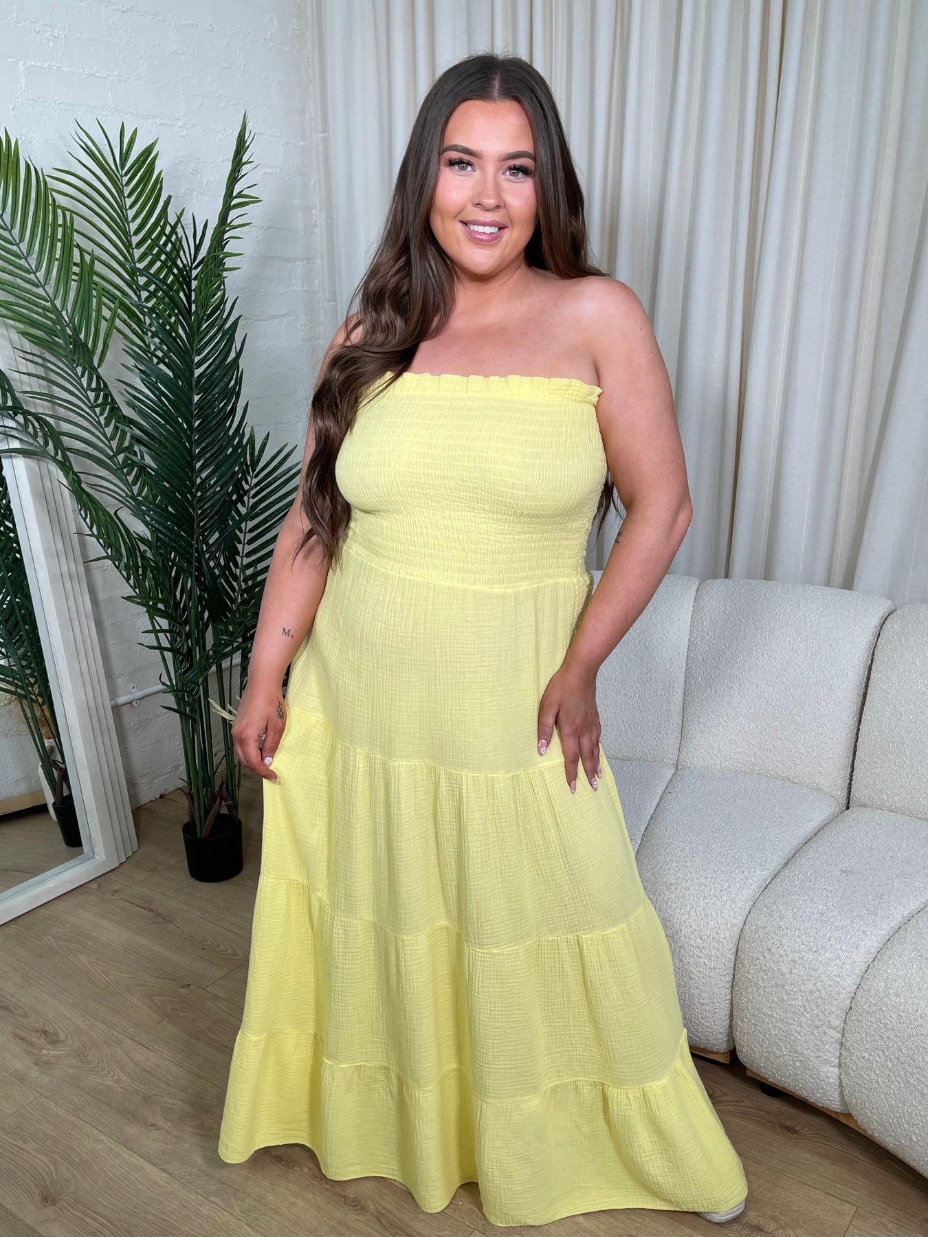 Savannah Yellow Bandeau Cheesecloth Maxi Dress
