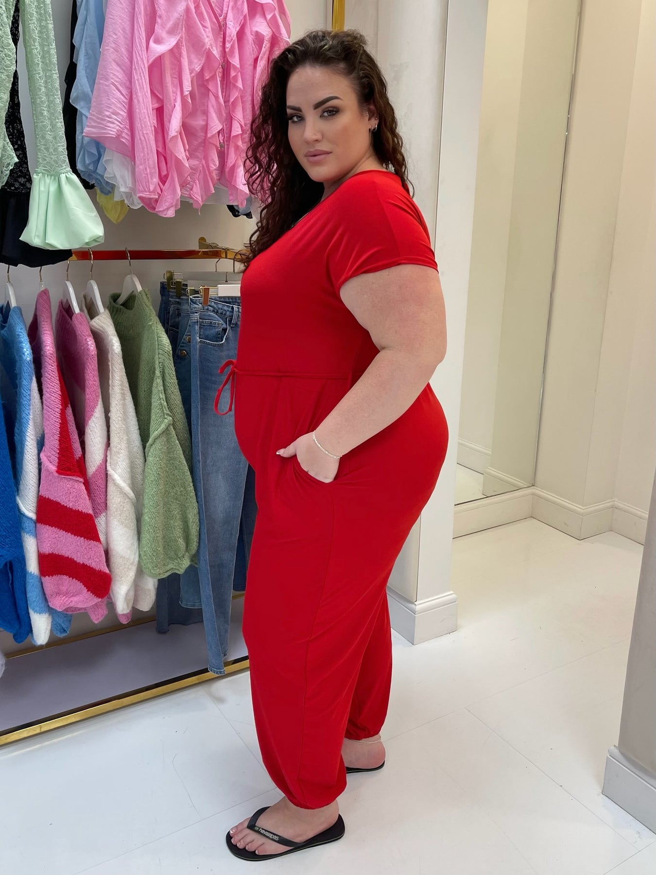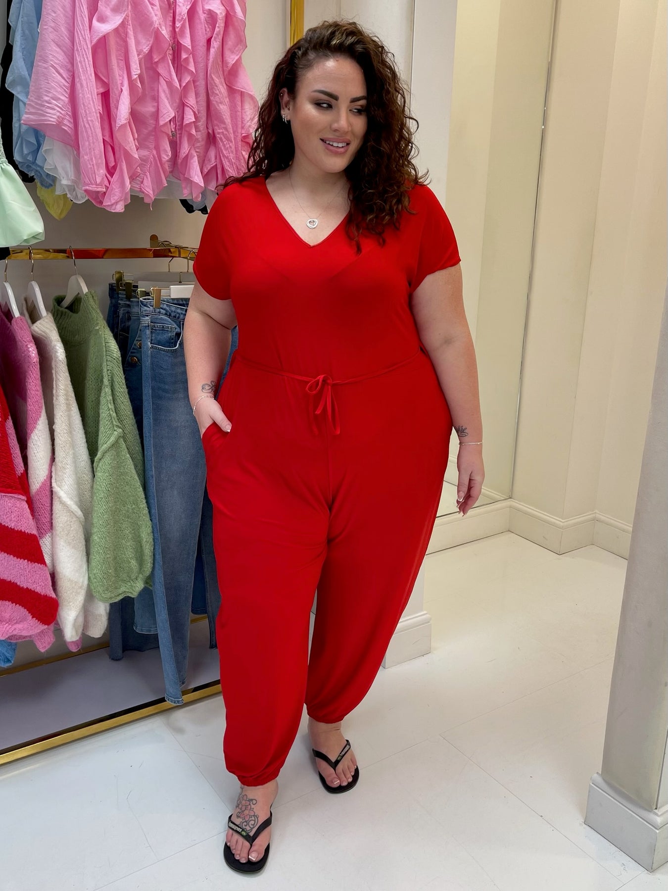 Nessie Red Slinky V Neck Easy Wearing Jumpsuit