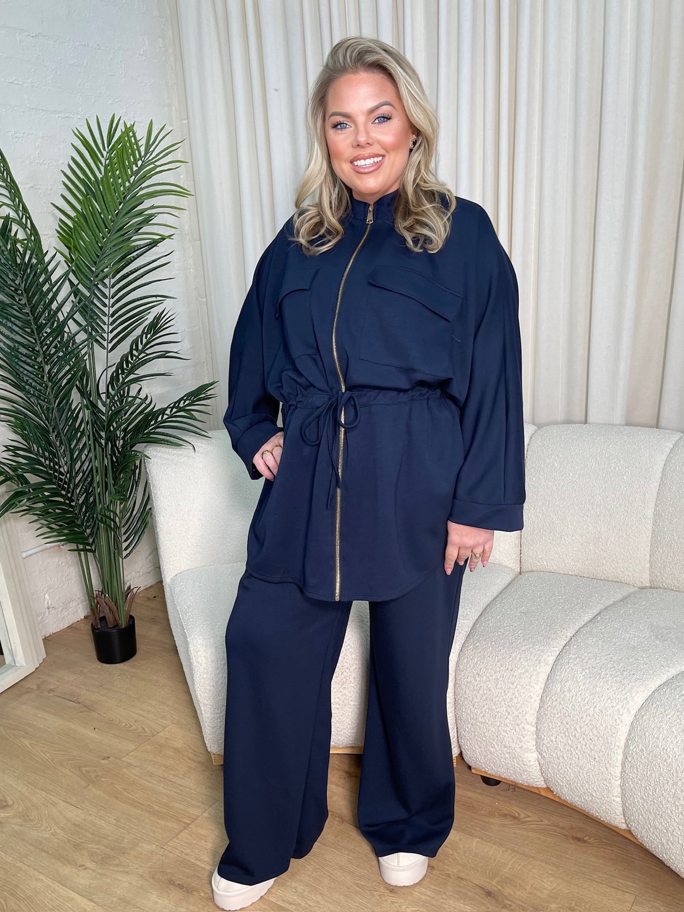 Ryder Navy Blue Peplum Jacket Co-Ord