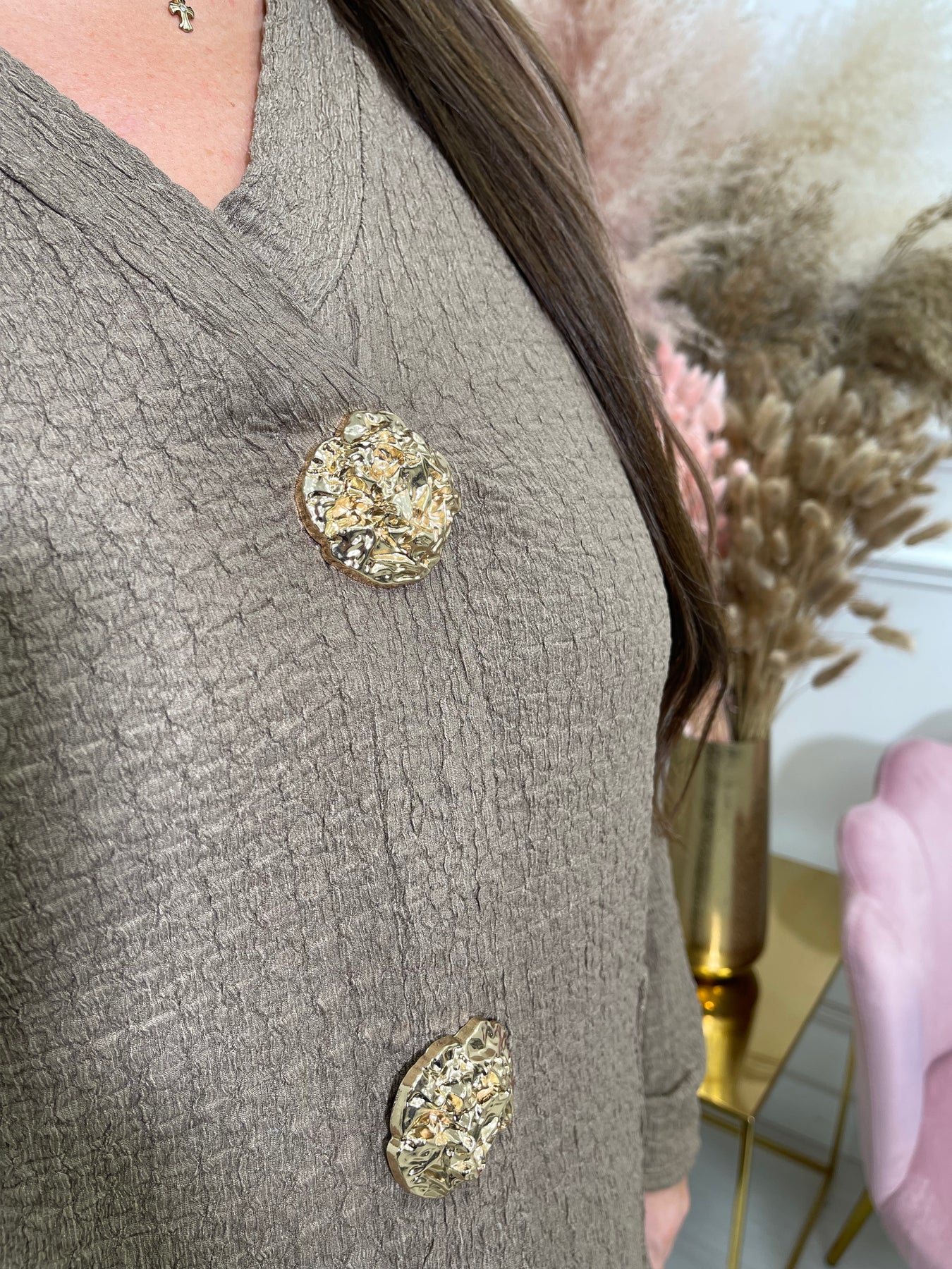 Charlie Mocha Gold Brooch Long Sleeve Trouser Set