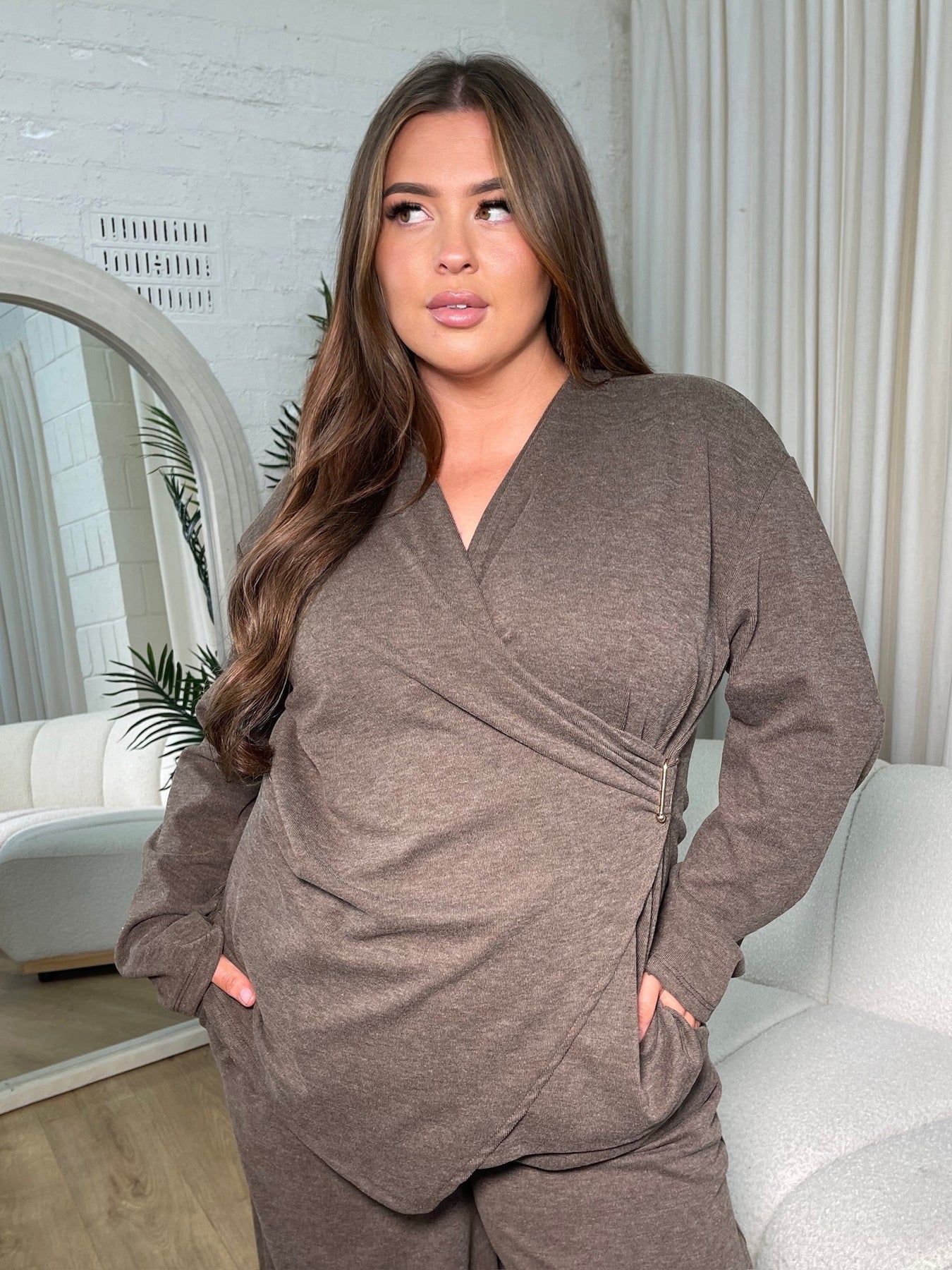 Petra Brown Cross Over Pin Detailed Co-Ord