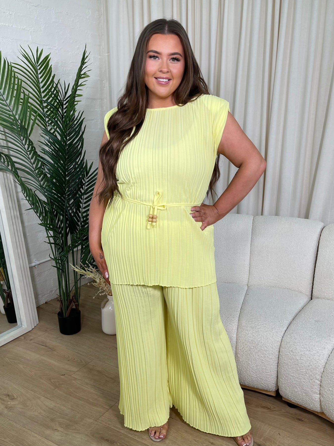 Vienna Yellow Pleated Tie Waist Co-Ord