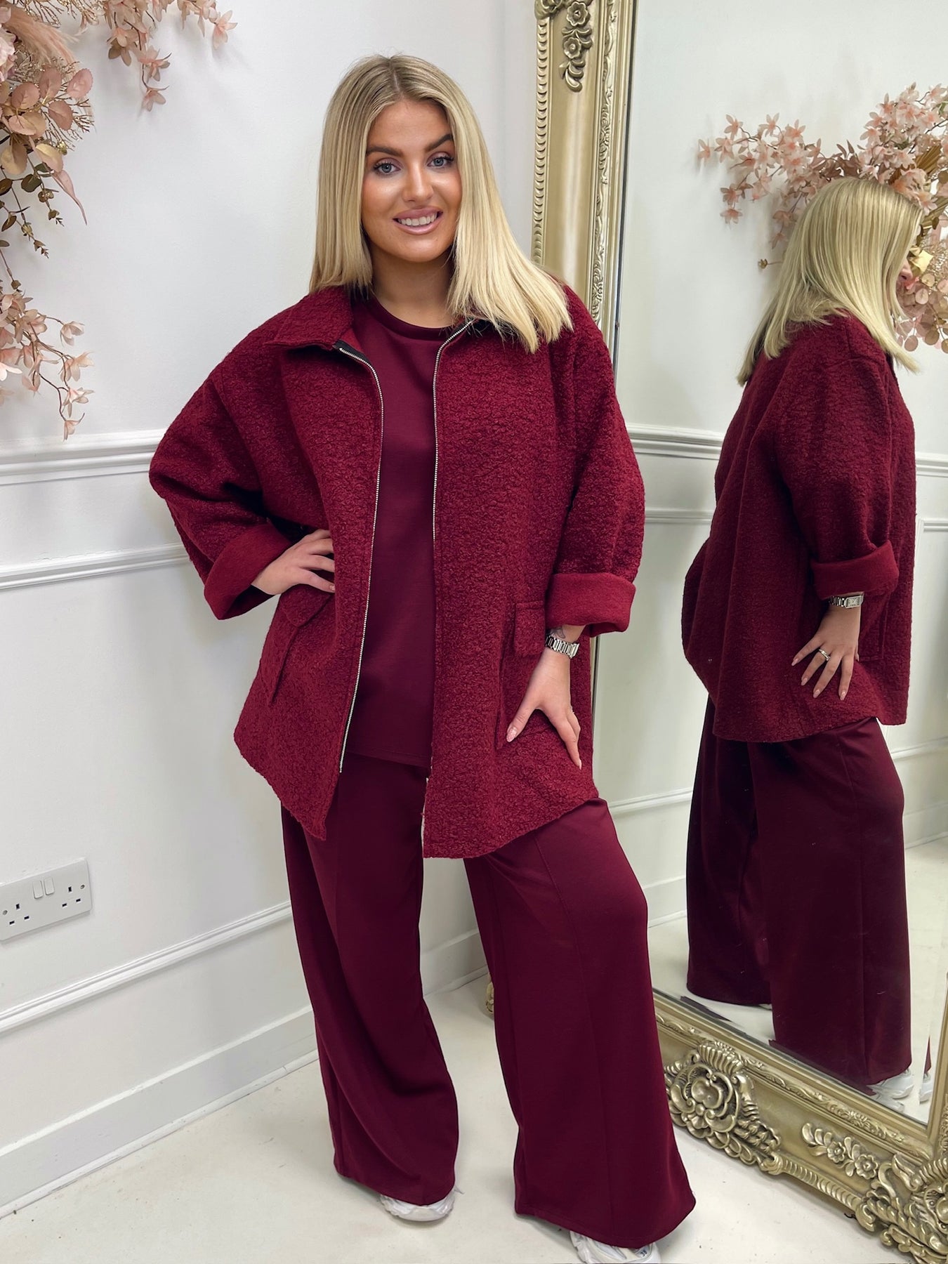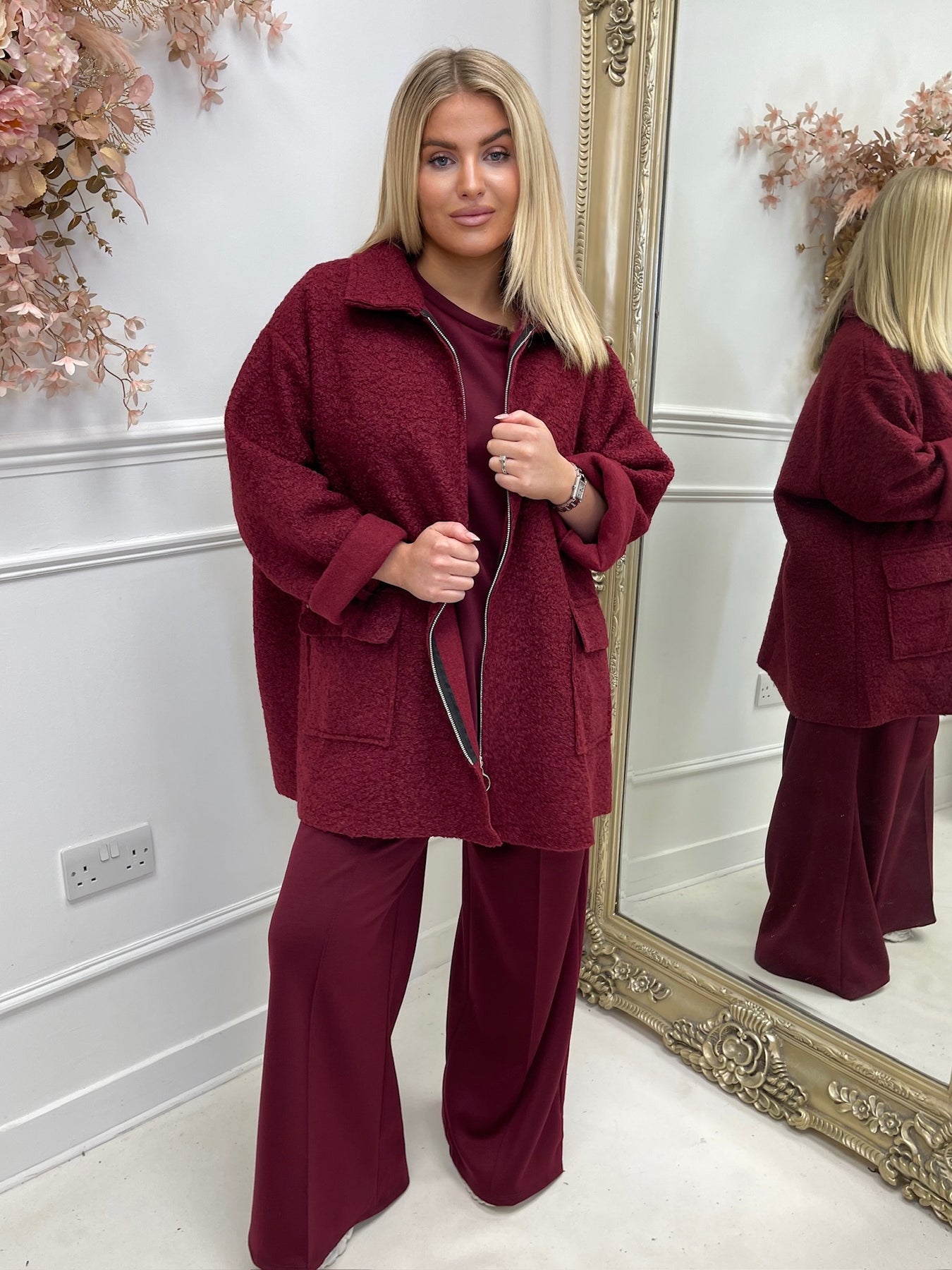 [{"id":51785347432785,"title":"One Size","option1":"One Size","option2":null,"option3":null,"sku":null,"requires_shipping":true,"taxable":true,"featured_image":null,"available":true,"name":"Willow Burgundy Zip Up Bouclé Shacket - One Size","public_title":"One Size","options":["One Size"],"price":3000,"weight":0,"compare_at_price":null,"inventory_management":"shopify","barcode":"","requires_selling_plan":false,"selling_plan_allocations":[]}]