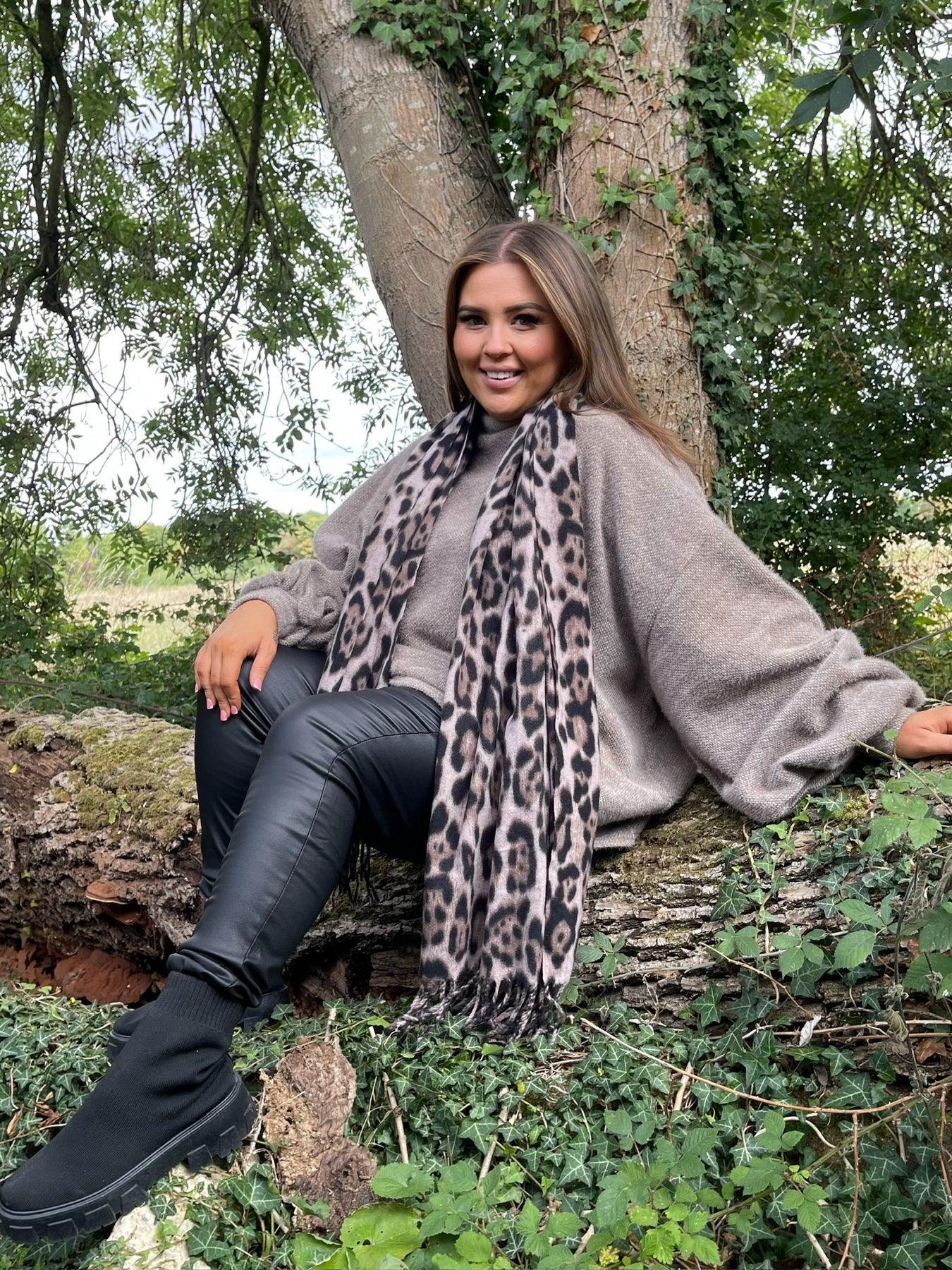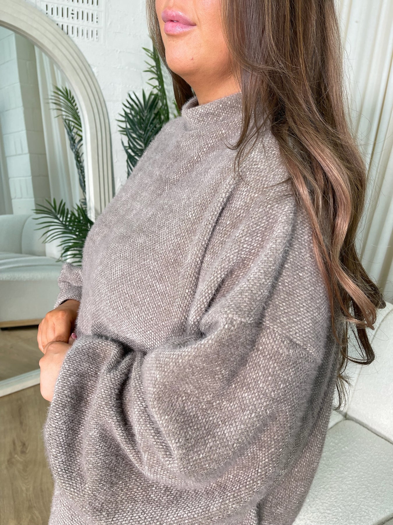 Autumn Taupe Cosy Knit Fluffy Balloon Sleeve Jumper
