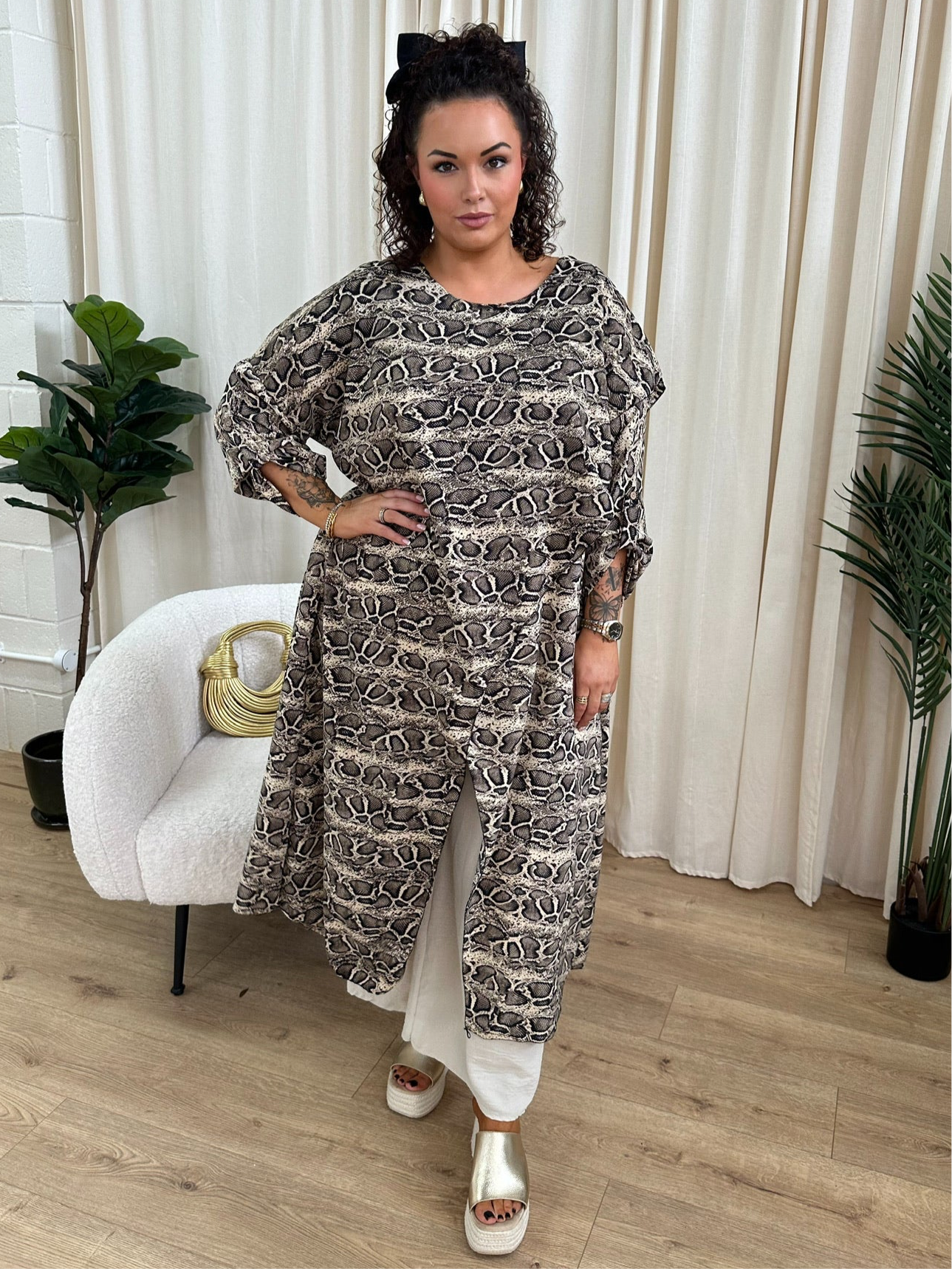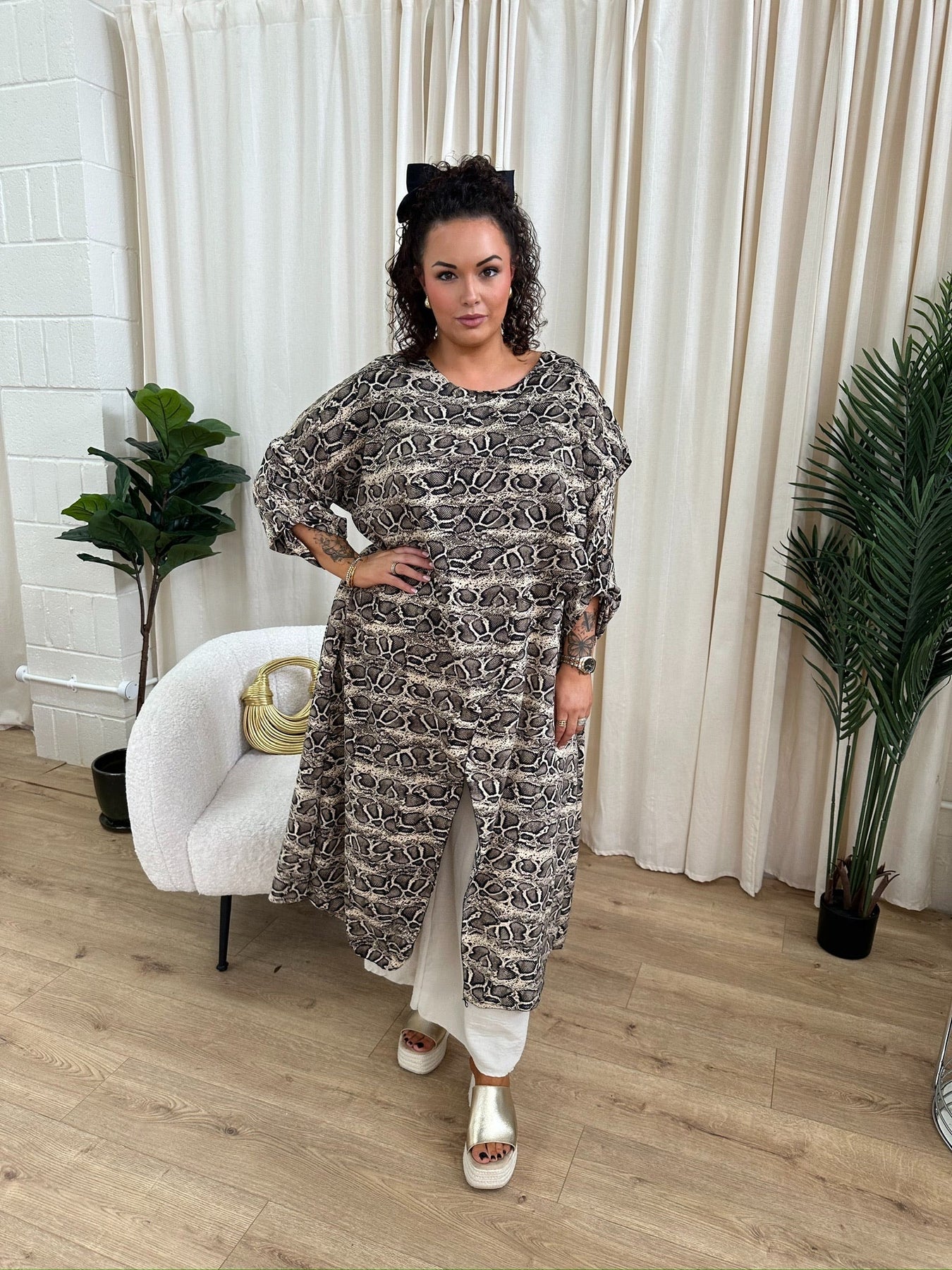 Bex Snake/Beige Asymmetric Curve Two Piece Set - Ellatino Curve