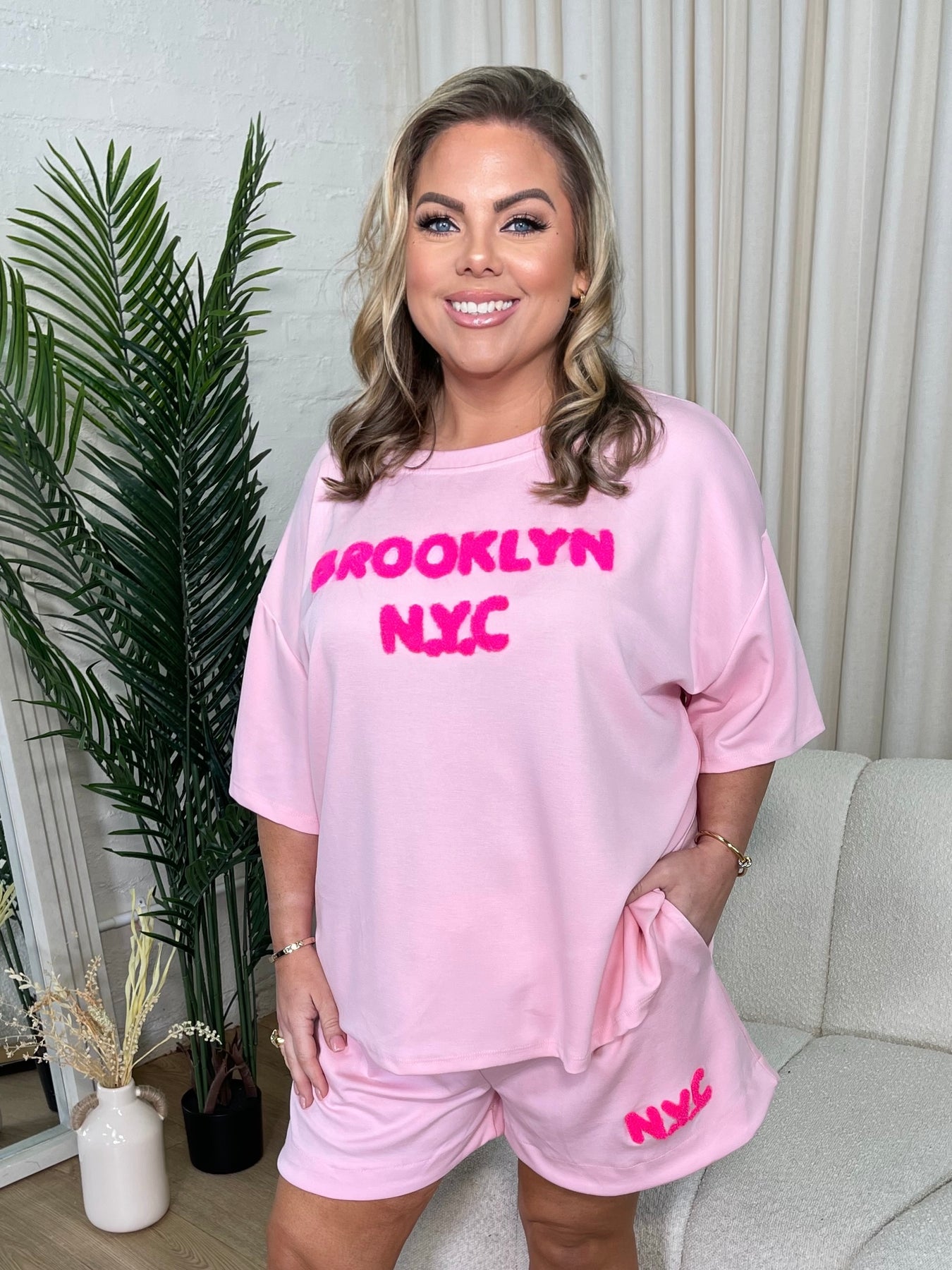 Boucle Pink Brooklyn N.Y.C Scuba Soft Shorts Set