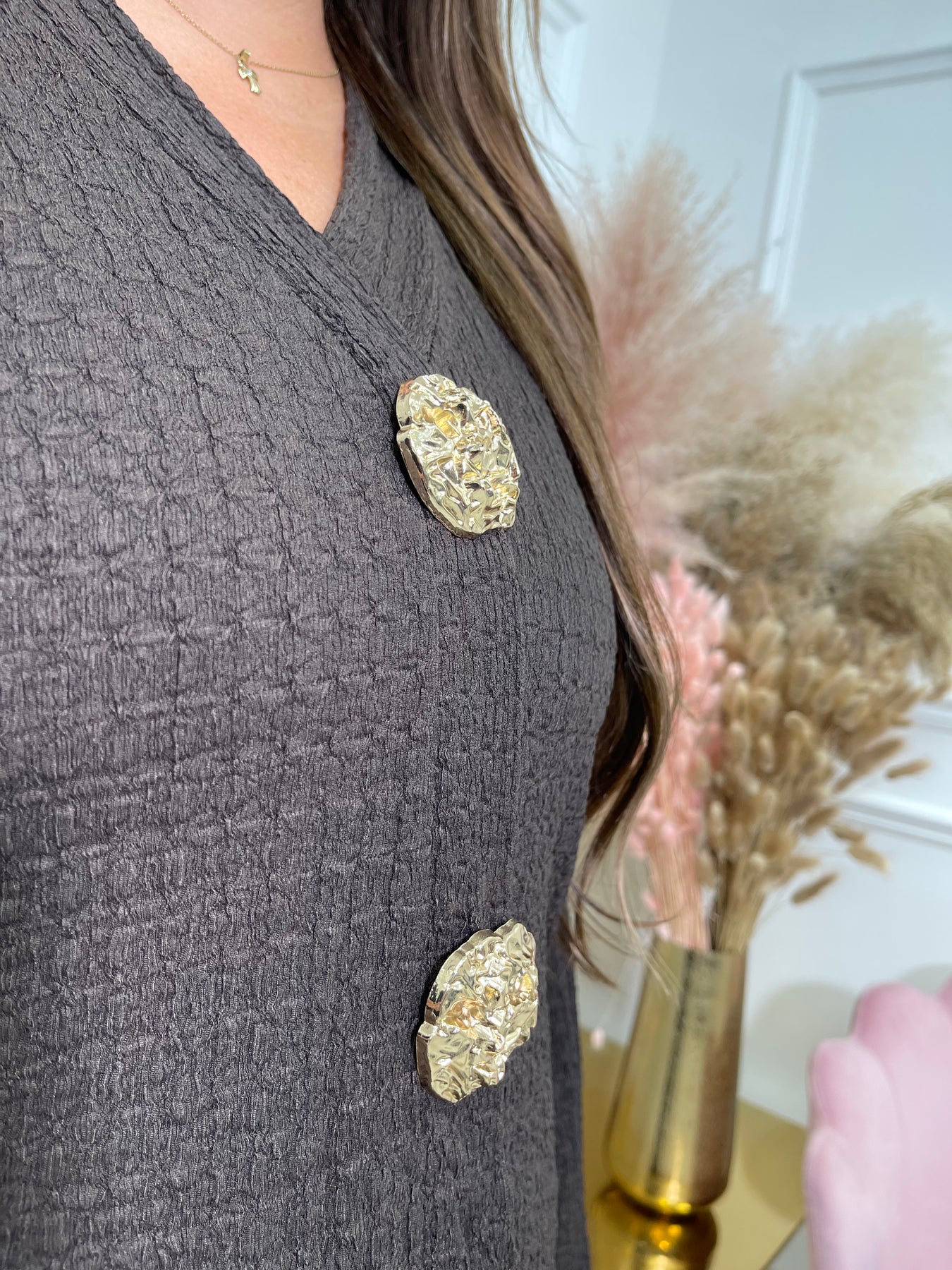 Charlie Brown Gold Brooch Long Sleeve Trouser Set