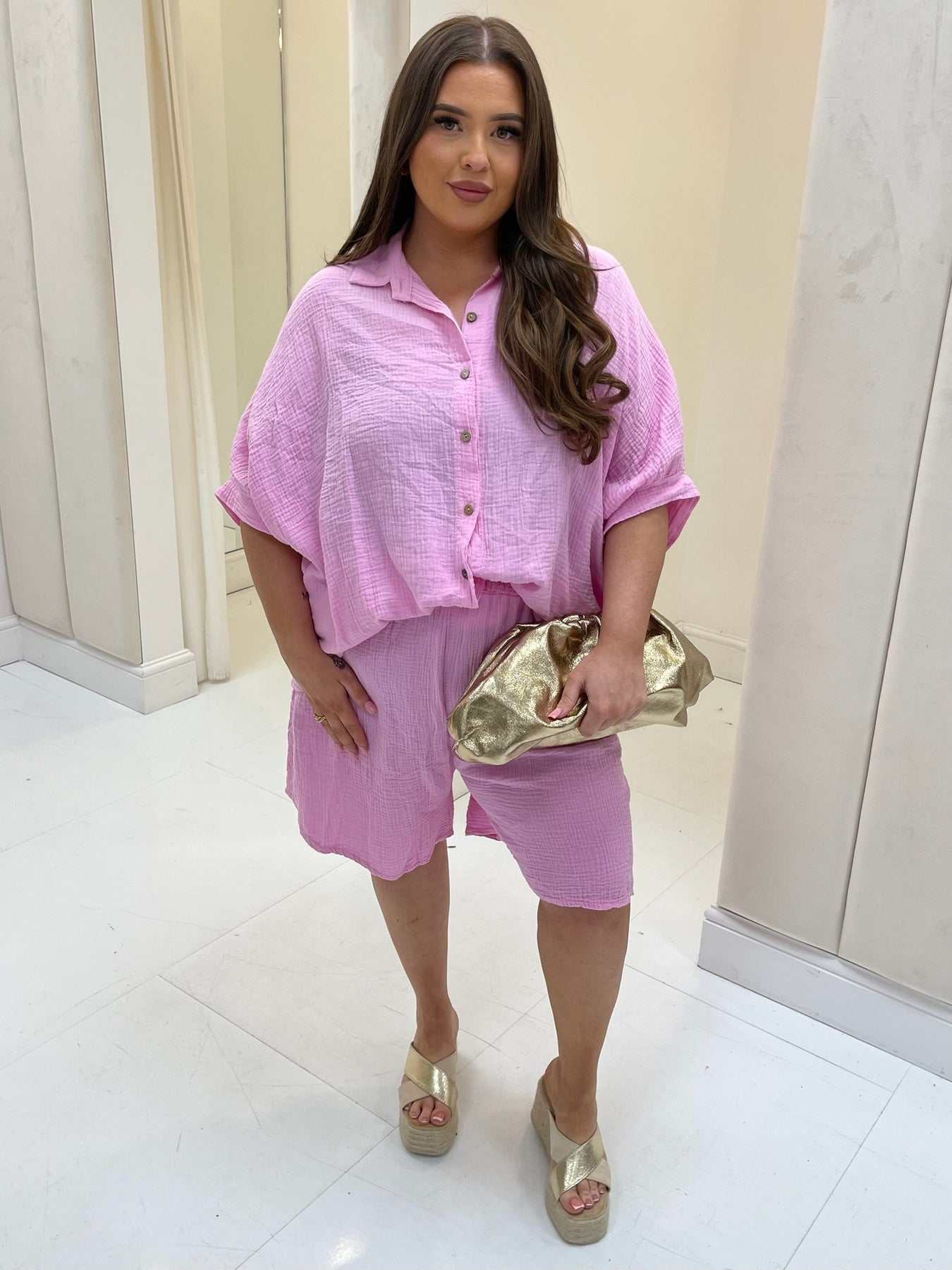 Daria Baby Pink Cheesecloth Shirt and Shorts Set