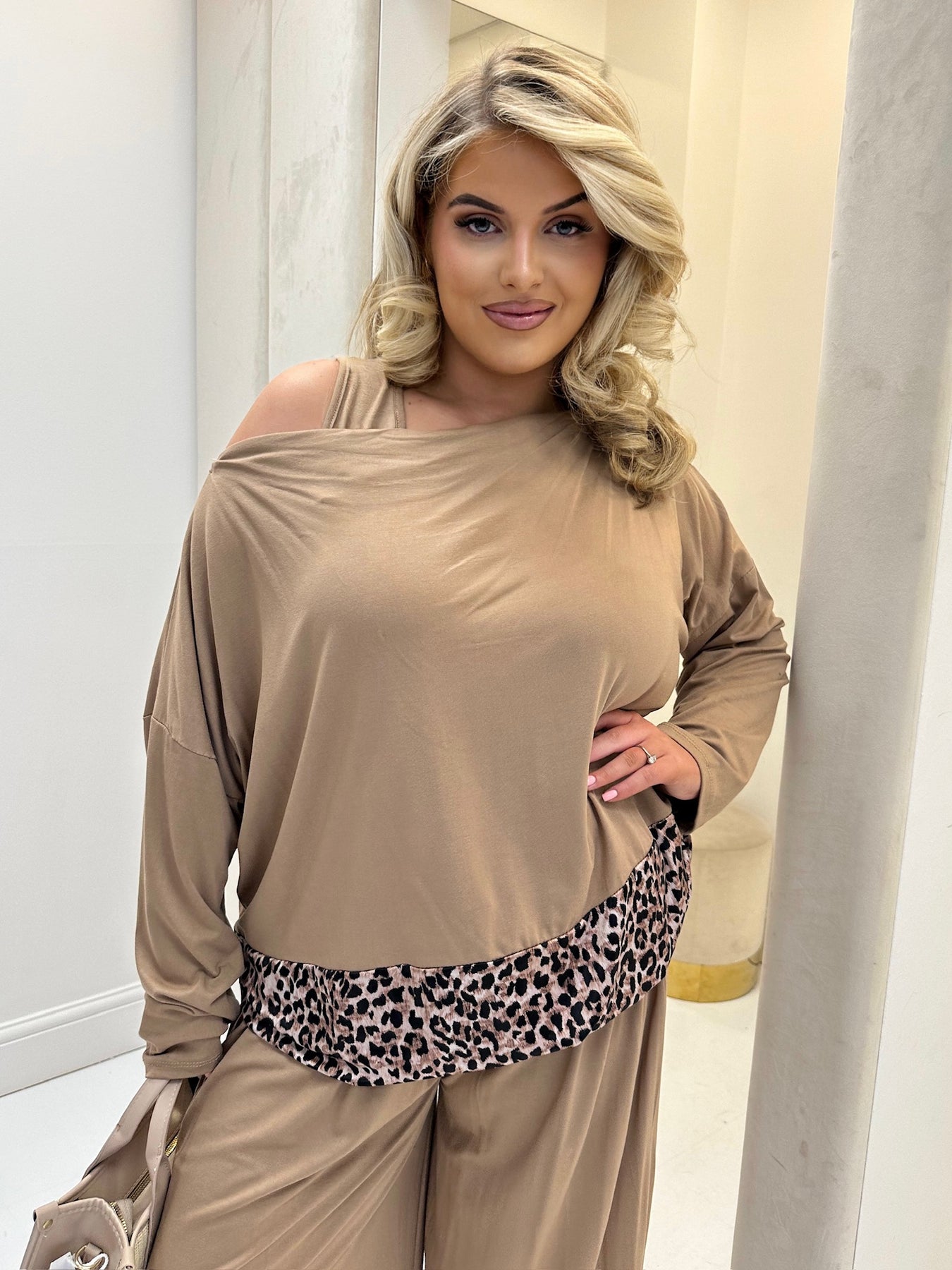 Hollyanna Caramel Leopard Print Cowl Neck Jersey Drawstring Co-Ord