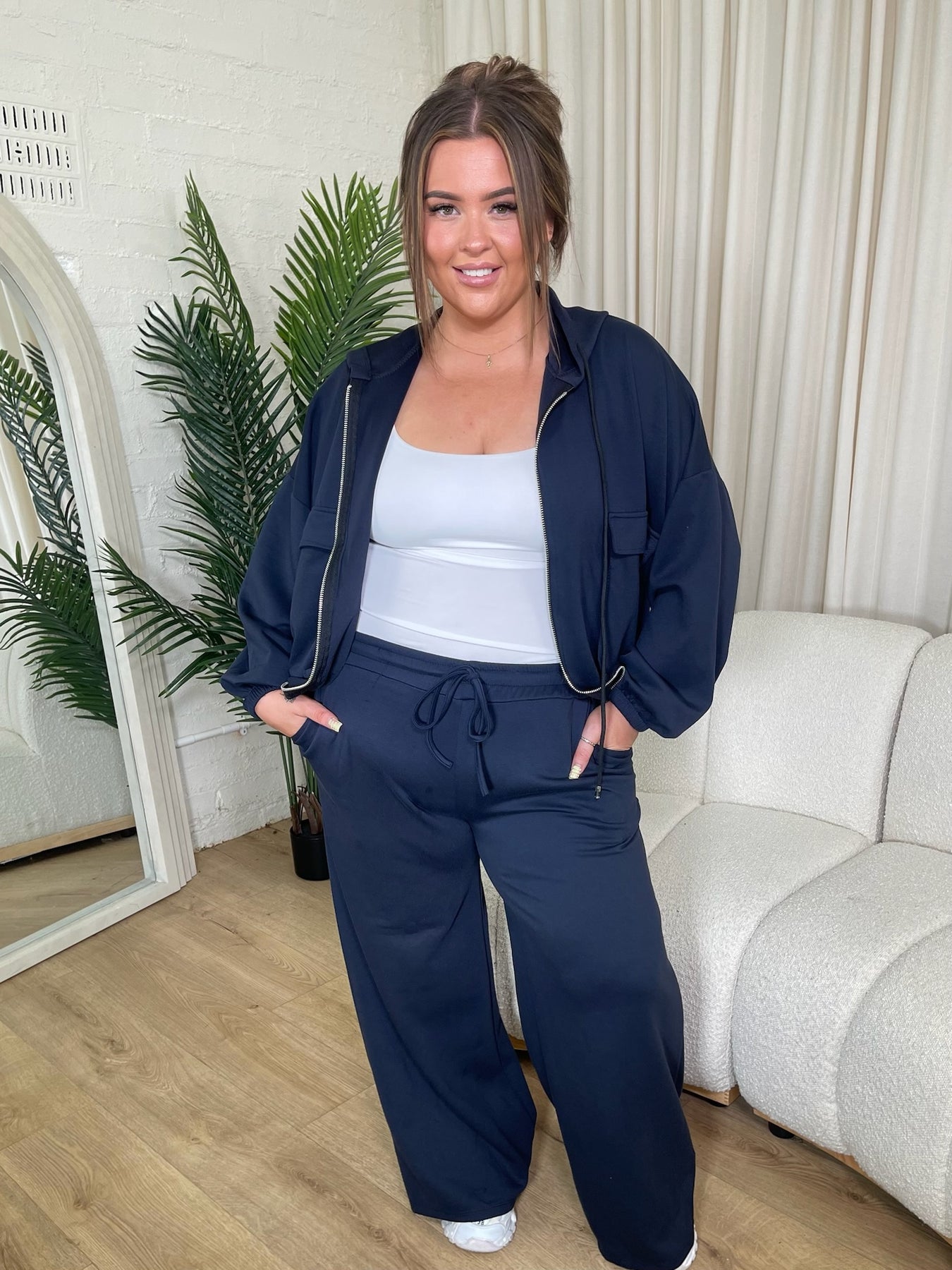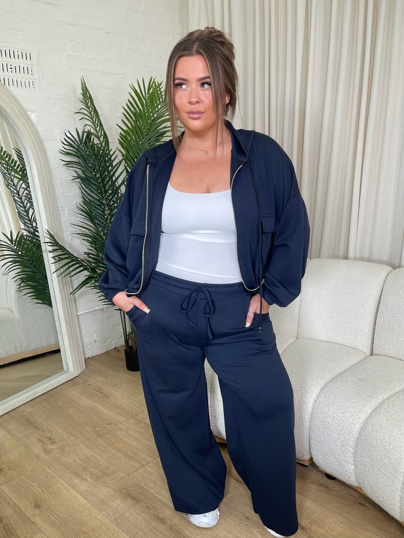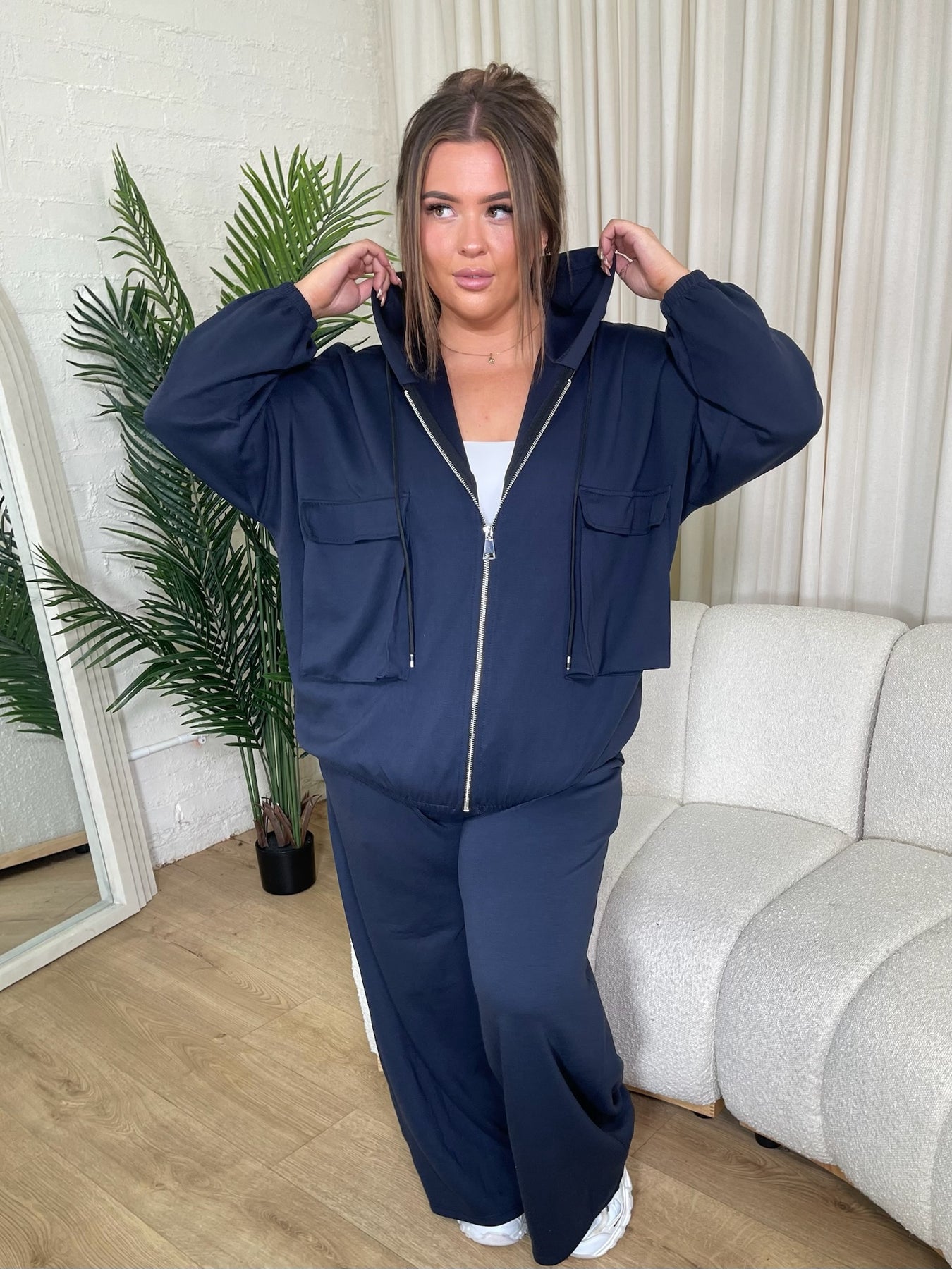 Sierra Navy Blue Hooded Wide Leg Trouser Set